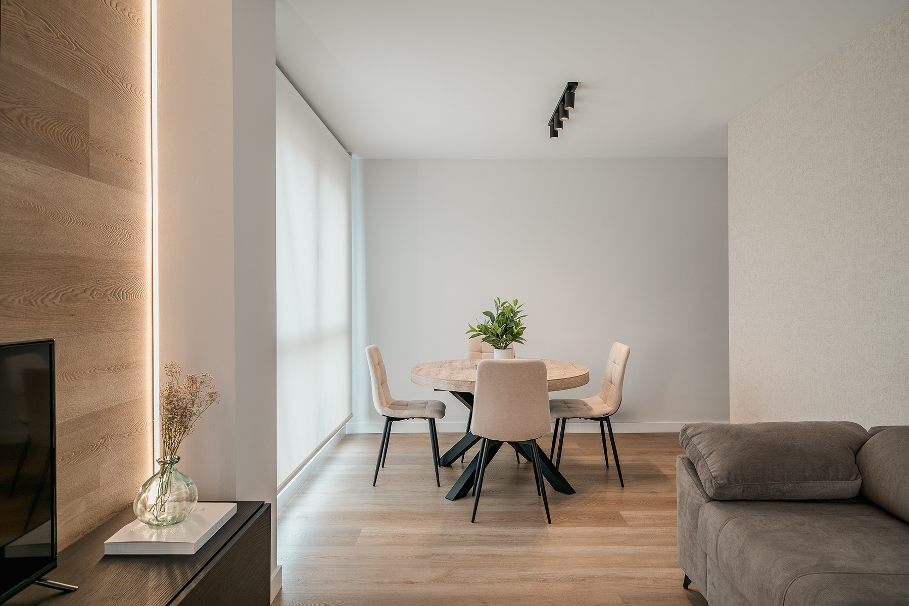 En este proyecto de reforma integral de este piso hemos buscado darle un toque actual y renovado a las distintas estancias de la vivienda.